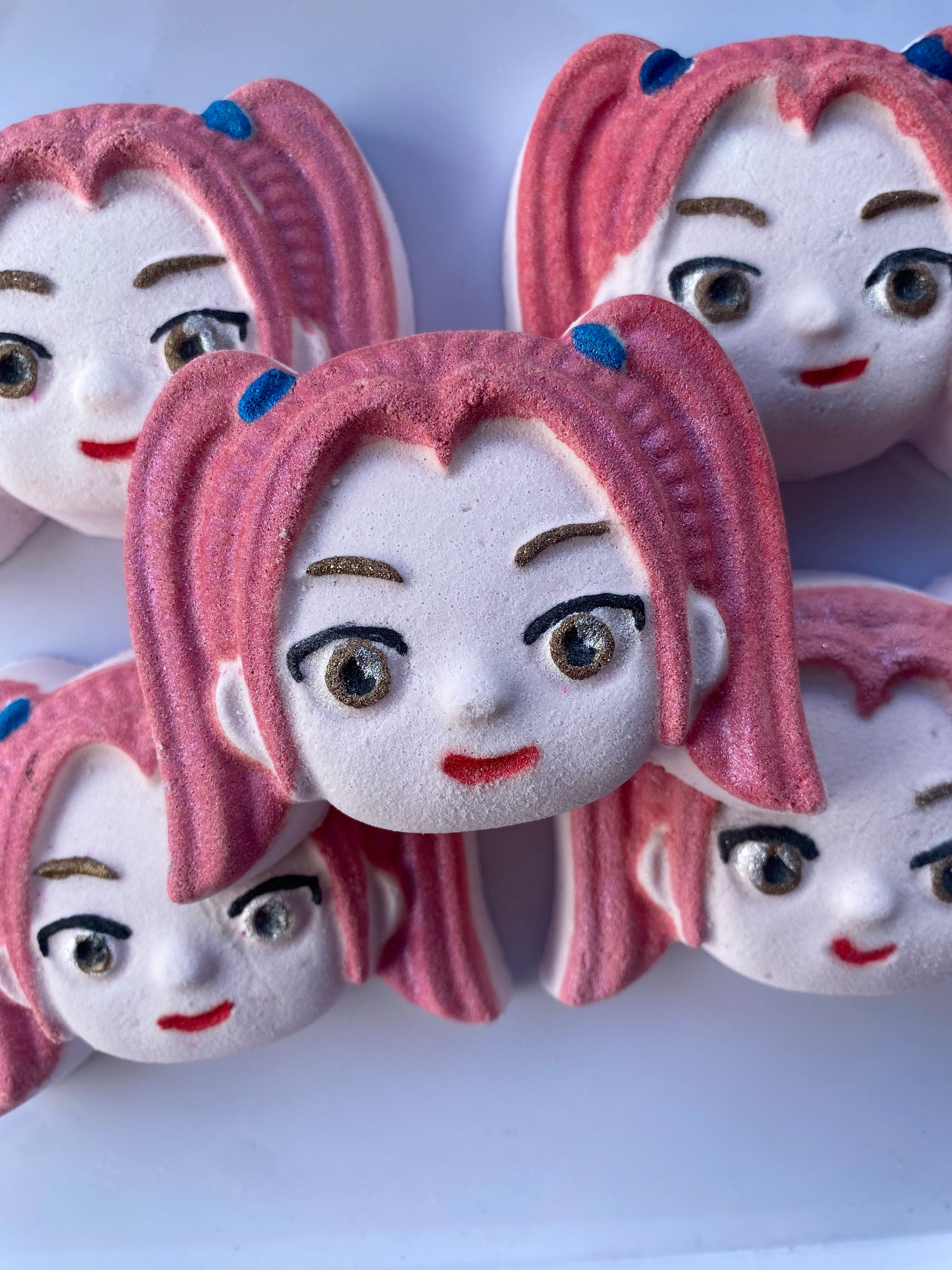 Ingredients: baking soda, citric acid, magnesium sulphate (epsom salt), kaolin clay, organic coconut oil, polysorbate 80, essential and/or fragrance oils, water soluble dye/mica, biodegradable glitter/sugar/botanicals as applicable.